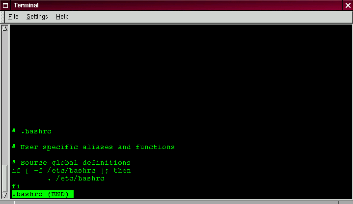 The .bashrc file is used by your shell when you login (an example .bashrc file is shown in Figure 3-7).