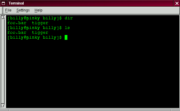 For example, in the same window that you'd used to type the dir and ls commands, now type: